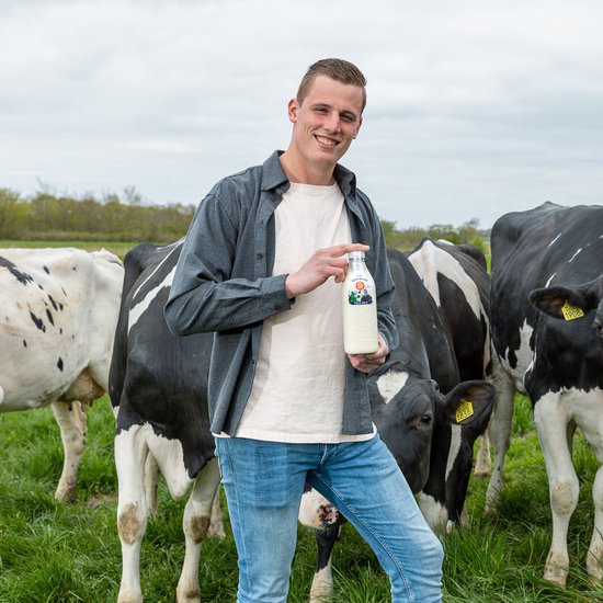 Midden in het Groene Hart, schuin boven Bodegraven, ligt de boerderij van boerin Yvonne en haar man Jorden. Voor het huis scharrelen wat kippen en konijnen, en achter op het erf staat een ruime en lichte serrestal voor de 135 koeien. Alle melk gaat naar de mini-zuivelfabriek op het erf en daarna in flessen gelijk door naar de supermarkt. Lekker vers dus.